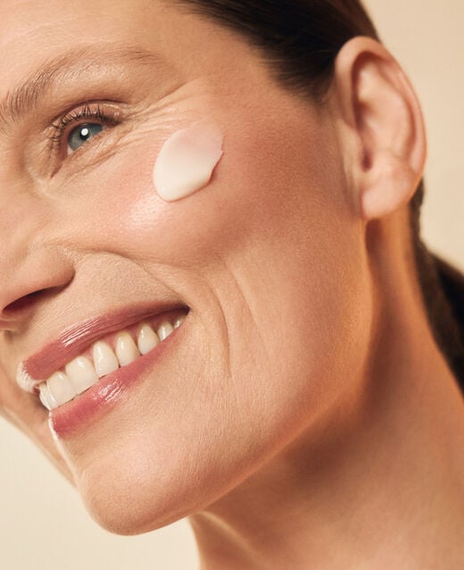 Smooth over the face with outward gliding motions. Start from the forehead and work down to the décolleté. Massage in gently until fully absorbed.